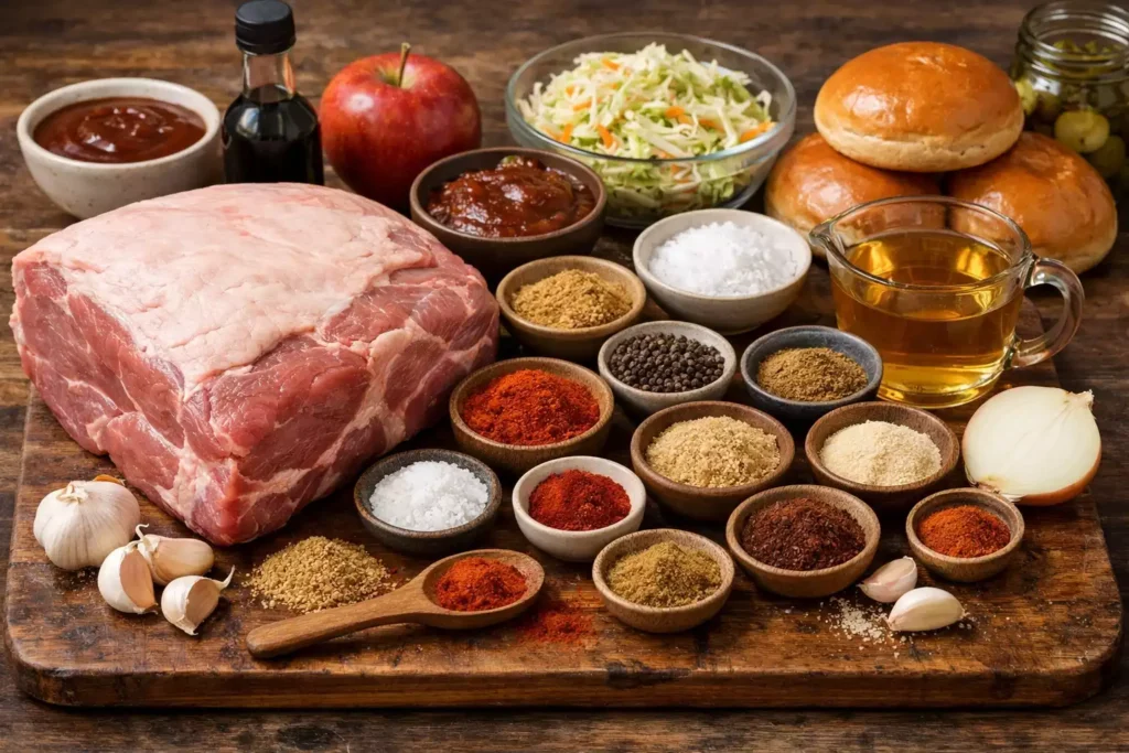 Pork shoulder (also called Boston butt or pork butt — the “butt” name comes from the barrel in which it was traditionally stored, not the anatomy) is the classic and correct cut. It has the right fat content, the right collagen structure, and the right size for long cooking. Pork leg can also be used but is leaner and produces a slightly drier result. Pork loin is wrong for pulled pork — too lean and will dry out long before it reaches the temperature needed for pulling.