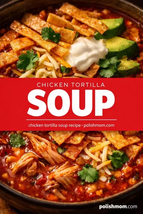 Ladle into bowls. Load with toppings: crispy tortilla strips (store-bought or bake your own), diced avocado, a dollop of sour cream, shredded cheese, cilantro, and a squeeze of lime. The toppings are not optional — they transform a good soup into a complete, textured, extraordinary meal. The crispy strips add crunch, the avocado adds creaminess, and the lime brightens everything. Skipping toppings on tortilla soup is like eating pierogi without sour cream — technically food, emotionally incomplete.