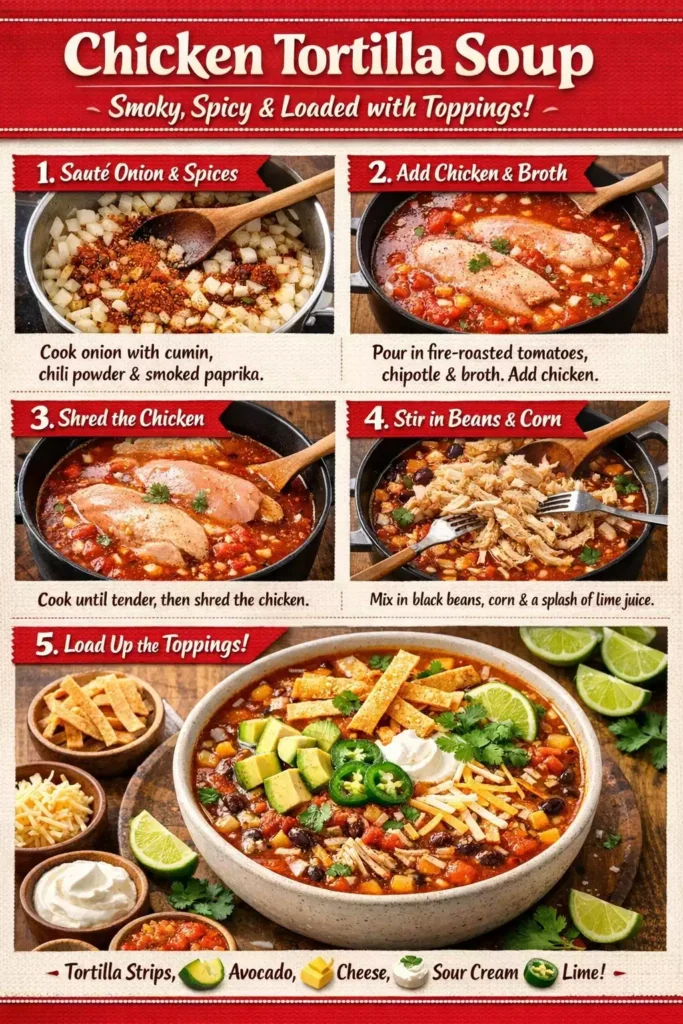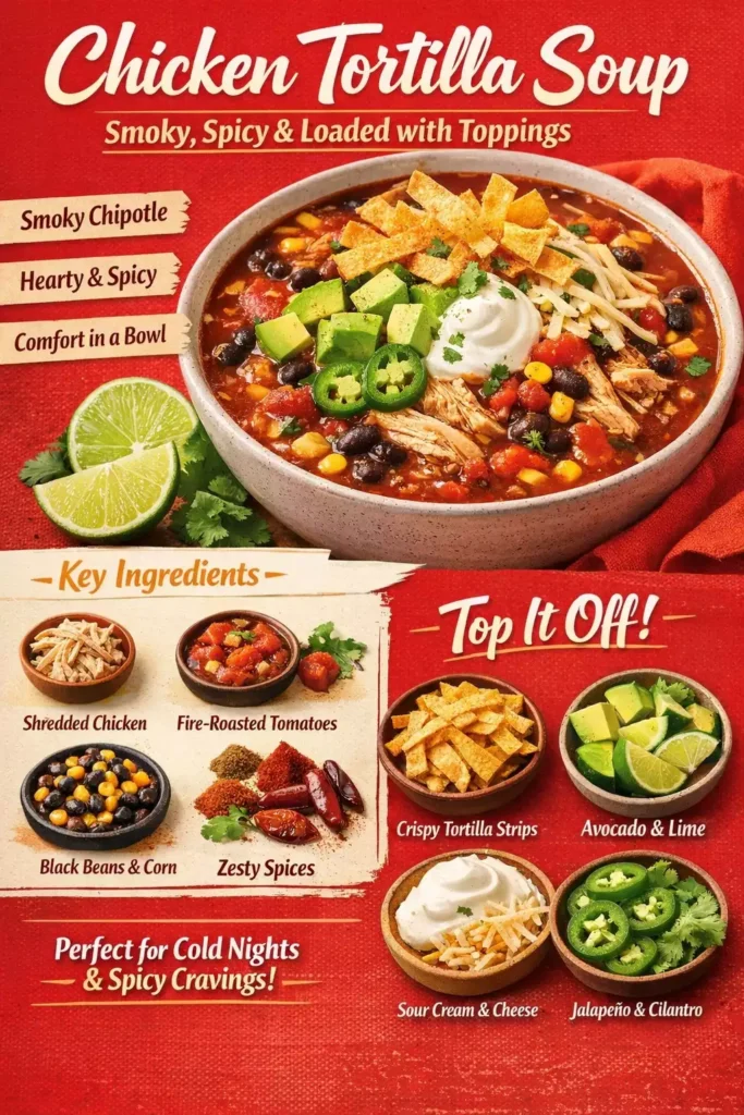 Chicken Tortilla Soup — Smoky, Spicy, Loaded With Toppings