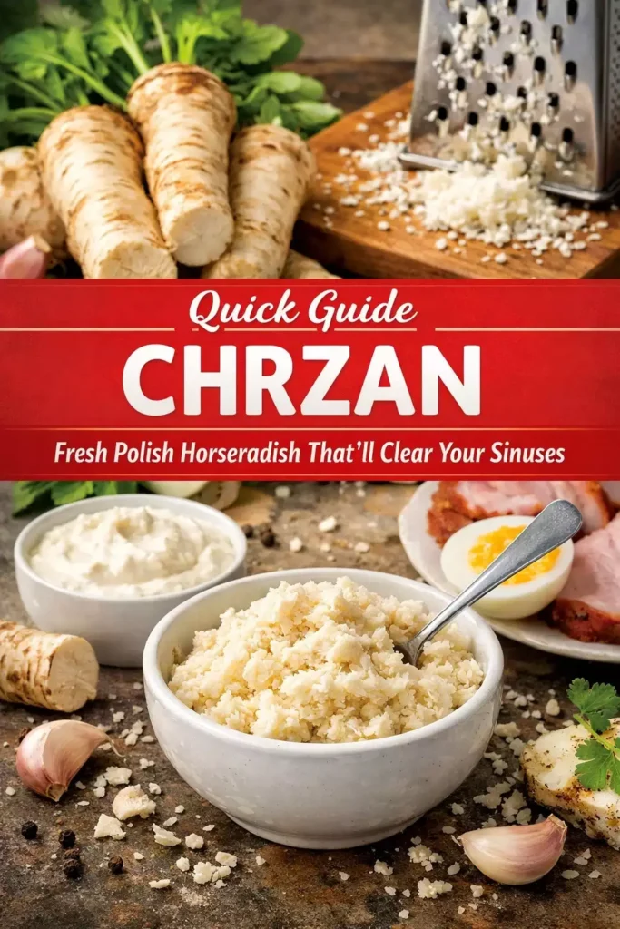 Fresh Polish horseradish sauce is one of the simplest things on the Easter table and one of the most irreplaceable. There is no prepared horseradish from a jar that replicates what you get from a fresh root grated ten minutes before serving. The intensity, the heat, the almost sweet earthiness underneath the burn — these things dissipate with processing and preservation. Fresh chrzan is alive in a way that jarred chrzan is not.