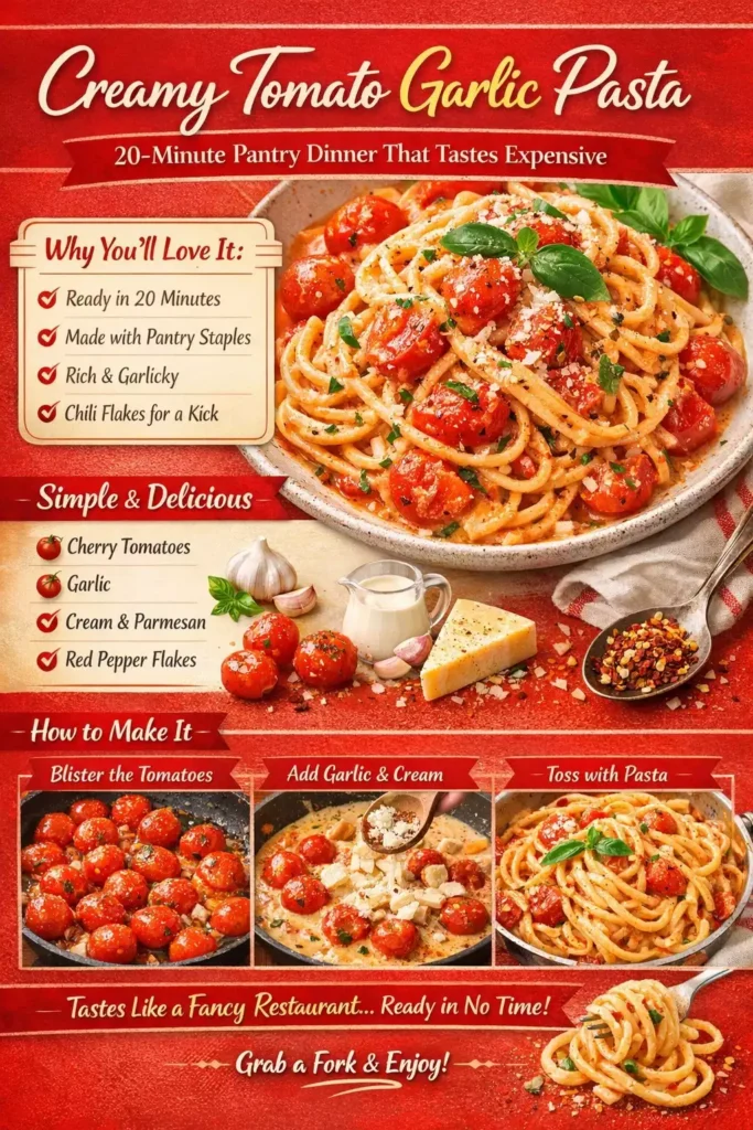 Creamy Tomato Garlic Pasta — 20-Minute Pantry Dinner That Tastes Expensive