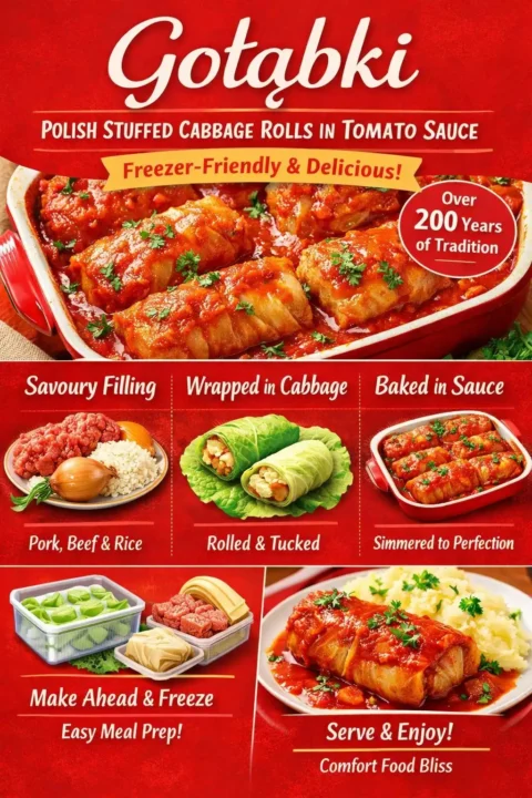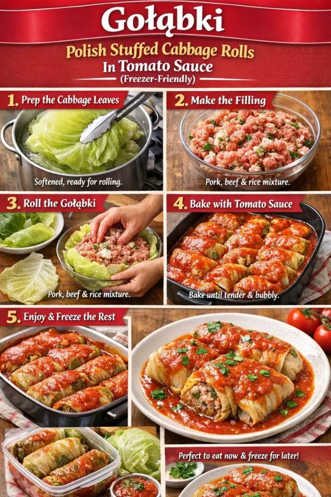 Gołąbki — Polish Stuffed Cabbage Rolls in Tomato Sauce (Freezer-Friendly)