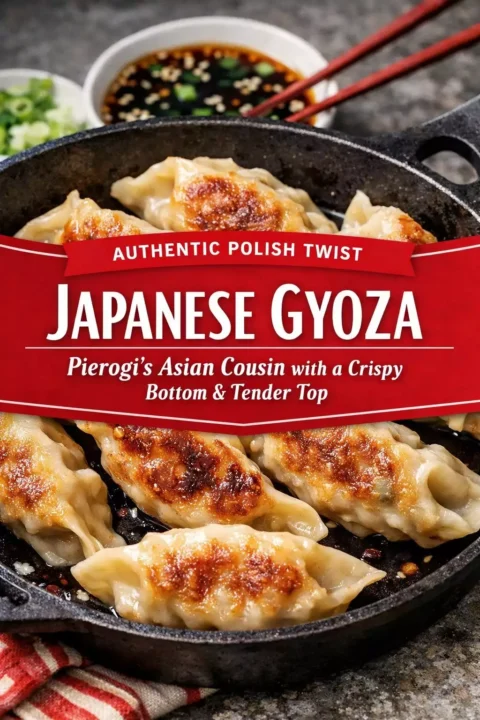Gyoza are Japanese pan-fried dumplings with a pork and vegetable filling, cooked in a skillet with a splash of water so the bottoms are crispy and golden while the tops are steamed and tender. That contrast — crispy bottom, soft top — is what makes gyoza special. Pierogi don’t have that duality (unless you pan-fry them after boiling, which I also love). Gyoza introduced me to a whole new dumpling dimension, and my cross-cultural dumpling journey has been one of the most rewarding parts of cooking at Polish Mom.