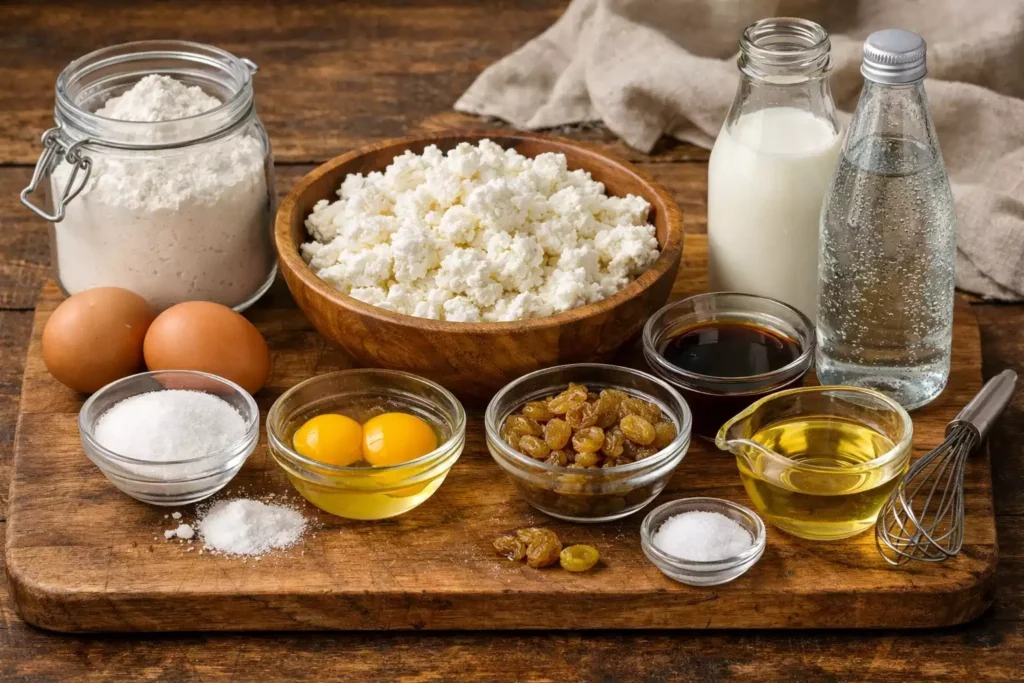 - • 1 pound (450g) twaróg (farmer cheese) or full-fat cottage cheese, drained
