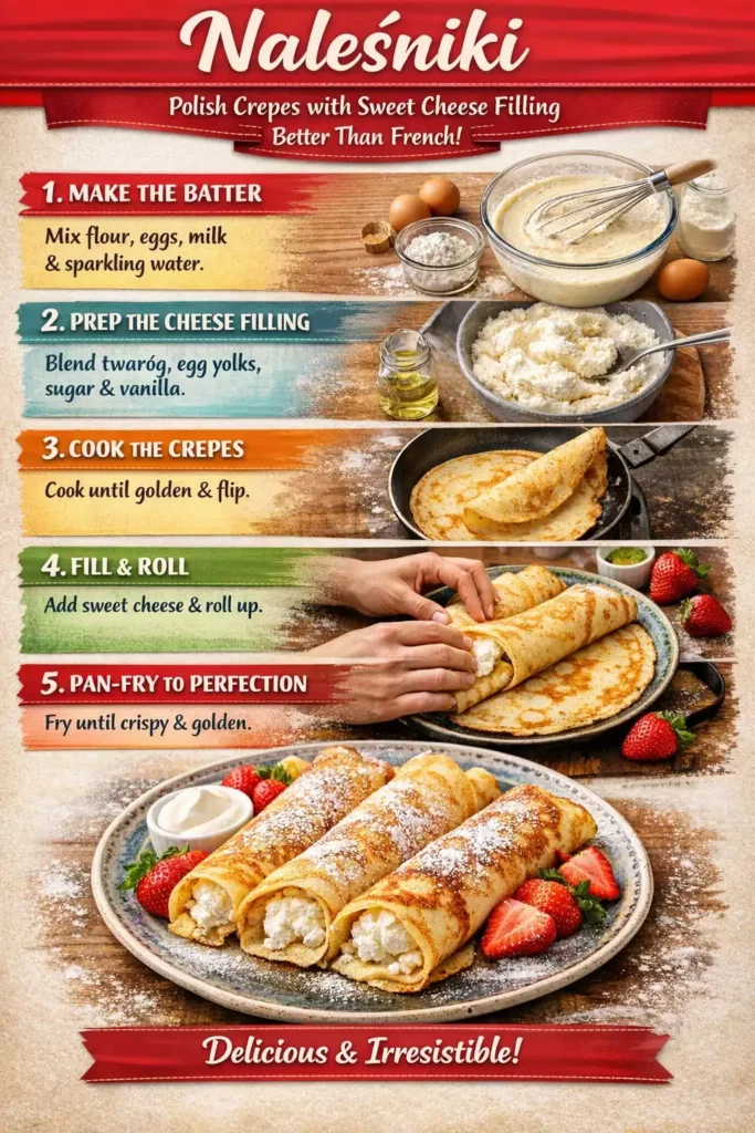 In France they have crêperies. In Poland we have naleśnikarnie — entire restaurants dedicated to nothing but filled crepes. That’s how seriously we take our naleśniki. And rightfully so, because these thin, golden pancakes stuffed with sweet cheese filling are one of the most perfect comfort foods on earth.