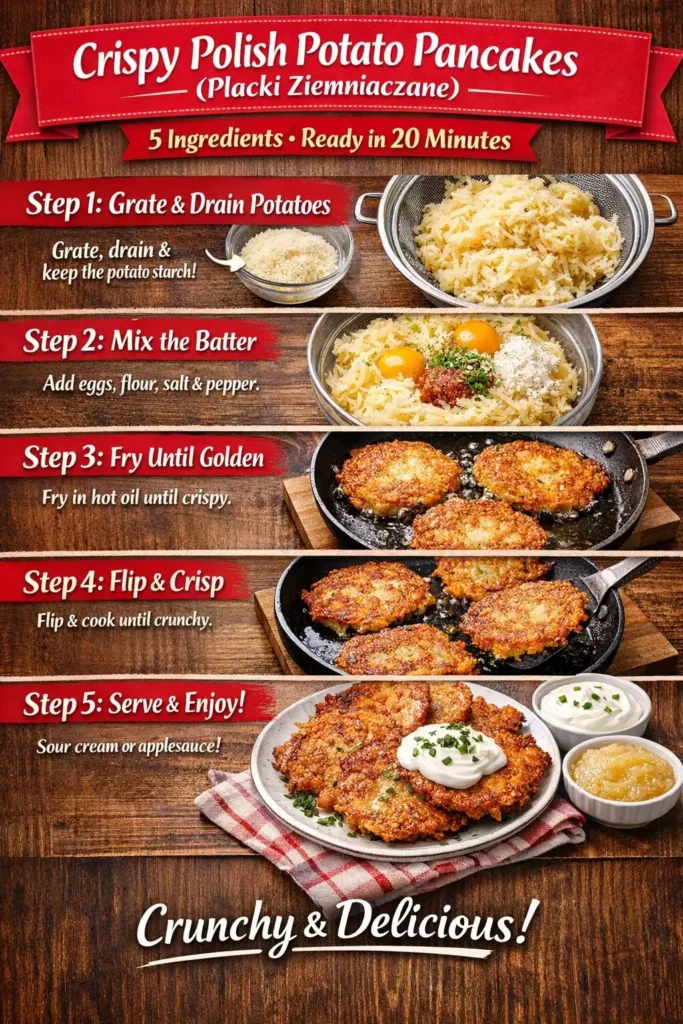 Crispy Polish Potato Pancakes (Placki Ziemniaczane) — 5 Ingredients, 20 Minutes