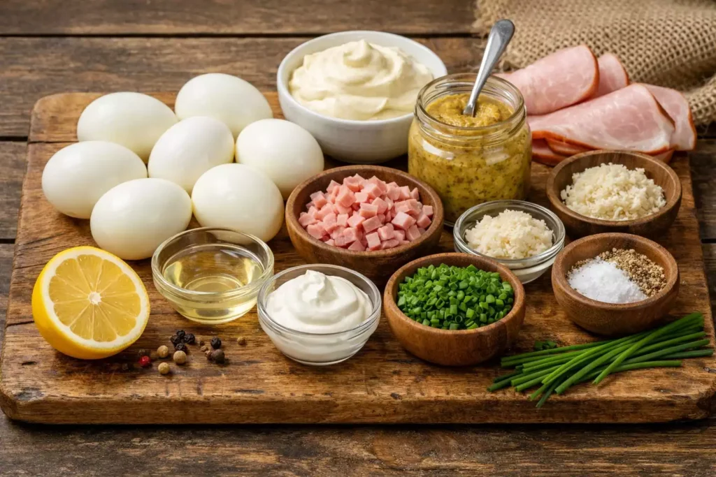 My version uses mustard (Polish or Dijon), a little mayo, fresh chives, and sometimes a small amount of ham when I want to make them more substantial. The filling should be creamy but not bland, and slightly too much mustard is always the right amount.