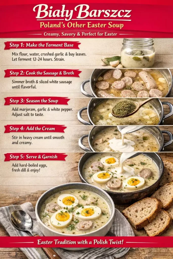 Everyone knows żurek. żurek gets the glory, the Instagram posts, the reverent descriptions in every Polish Easter article ever written. And look, I love żurek. I grew up eating żurek. But there is another Easter soup in Poland that has been quietly doing its thing for generations without getting nearly enough credit — and that soup is biały barszcz.