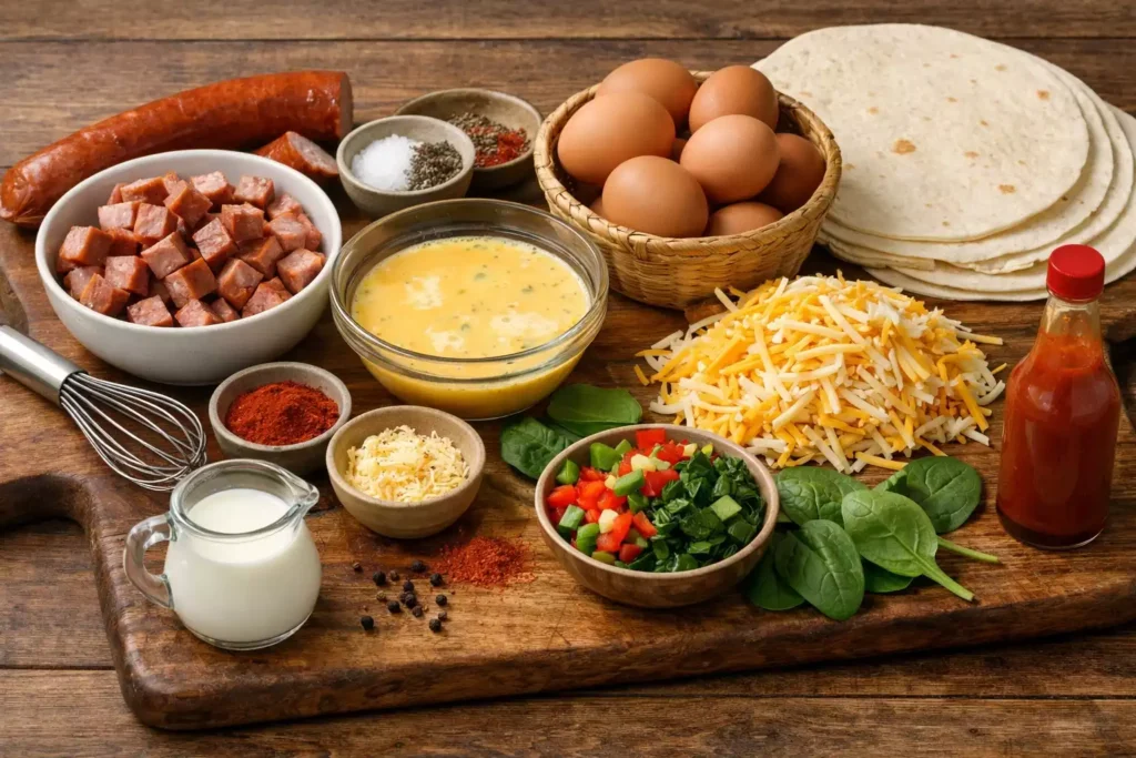 Here’s why this is worth your Sunday afternoon: one batch of 12 rolls takes about 25 minutes to prep. That’s 5 breakfasts for 2 kids, or 2.5 breakfasts for 4 kids, or one very enthusiastic breakfast for a teenager who just discovered growth spurts. The cost per roll is roughly $0.60 when you use kielbasa (cheaper than breakfast sausage), eggs, cheese, and tortillas. Compare that to $3-4 per frozen breakfast burrito from the store, and the math is overwhelmingly in your favour. I’m not just a cook — I’m a CFO, and this recipe passes the budget review with flying colours.