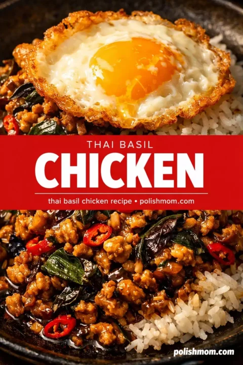 Pad krapow (sometimes spelled pad gaprao or pad kaprow) is Thai stir-fried basil chicken — minced chicken cooked with garlic, chillies, soy sauce, fish sauce, and a generous pile of holy basil, traditionally served over rice with a crispy fried egg on top. It’s Thailand’s go-to street food, the equivalent of what kielbasa and sauerkraut is to a Polish weeknight — fast, satisfying, and deeply personal to the culture. It takes 15 minutes, uses one pan, and delivers a flavour punch that’s completely out of proportion to the effort involved.