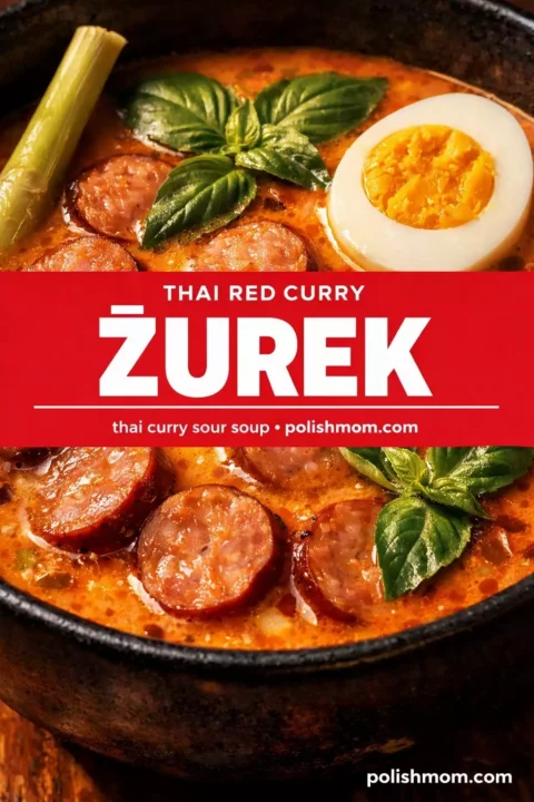 Thai curry sour soup takes the tangy, fermented base of żurek and blends it with Thai red curry paste and coconut milk. It keeps the kielbasa (why would I remove kielbasa from anything?). It keeps the hard-boiled egg. It adds lemongrass, fish sauce, and lime. The result is the most experimental recipe on Polish Mom — a soup that’s simultaneously sour like żurek and creamy like Thai curry, with a warmth that’s part Polish, part Southeast Asian, and entirely unexpected.